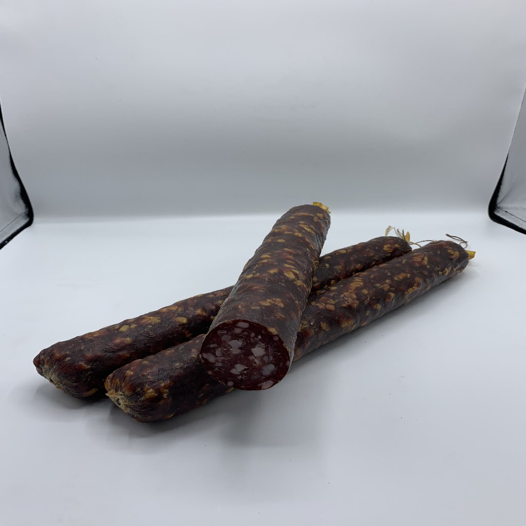Magst du es delikat? Dann koste unsere Salami mit Hirschfleisch. Dem Grundteig der Salami wird das Beste vom Hirsch hinzugefügt. Unsere delikate Hirschsalami sollten nicht nur Wildfreunde einmal kosten.